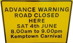 Be it a community event, date sticker or advanced warning sign With our OKI LPR utility printer we can offer a full design and manufacture service for all advisory temporary traffic signs.